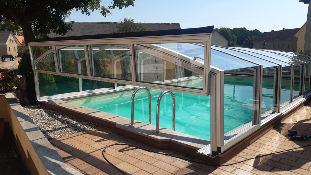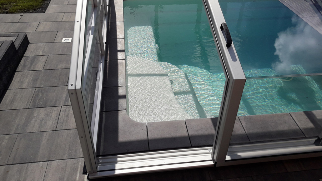 CARAT Abri de piscine coulissant mi-haut avec les pans droits