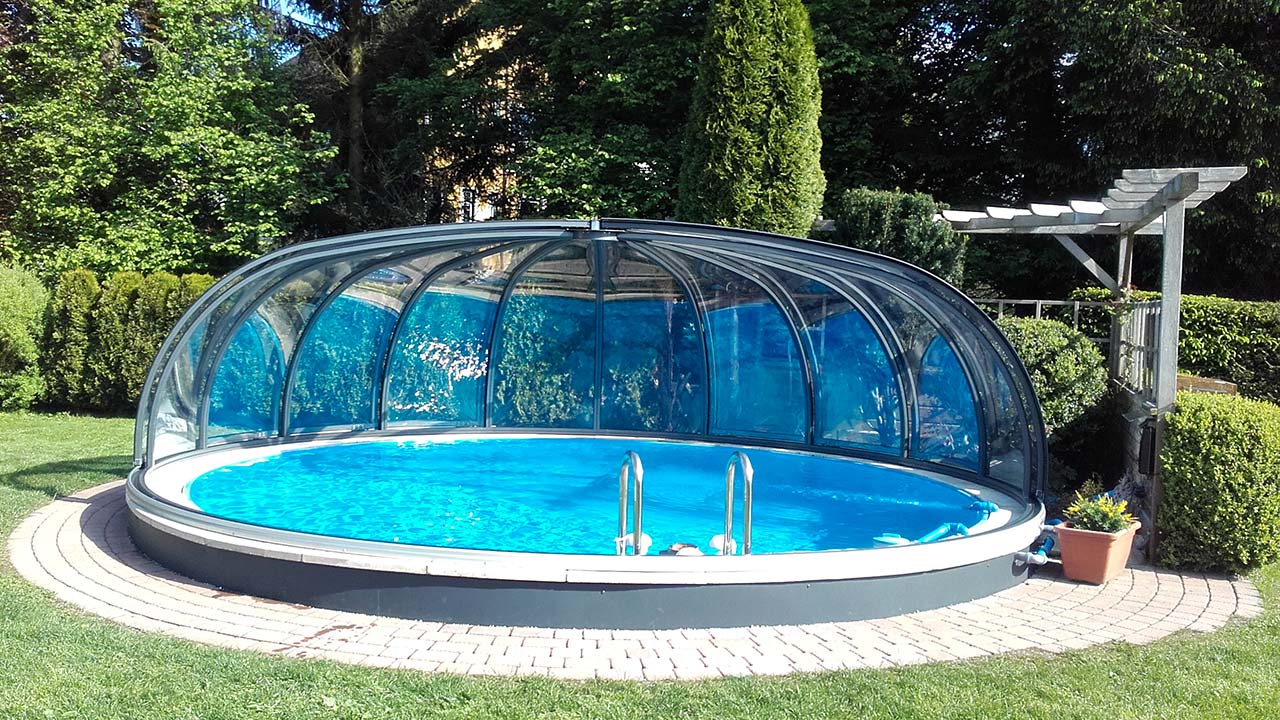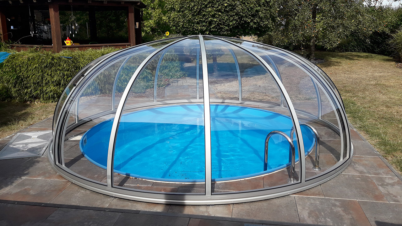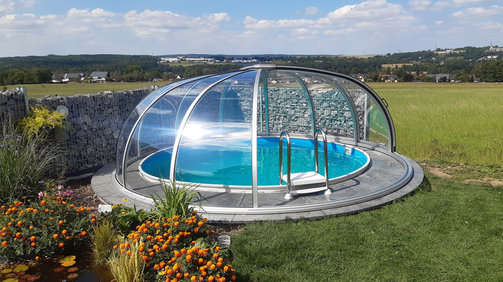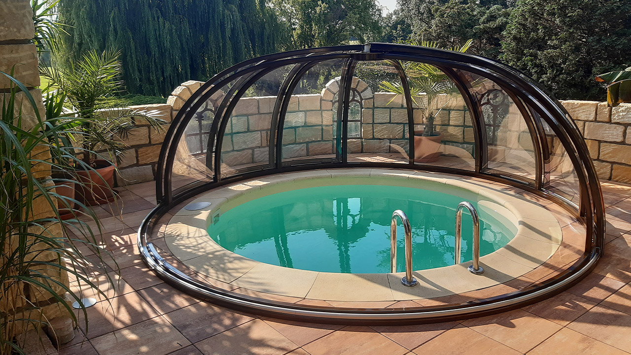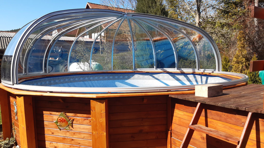 L’abri de piscine ROTONDE a été spécialement conçu pour les piscines rondes, en suivant la forme du bassin, afin de garantir une utilisation optimale de l’espace.