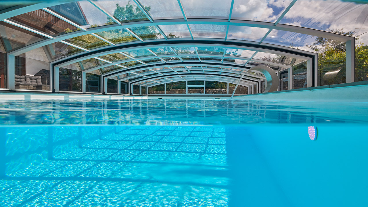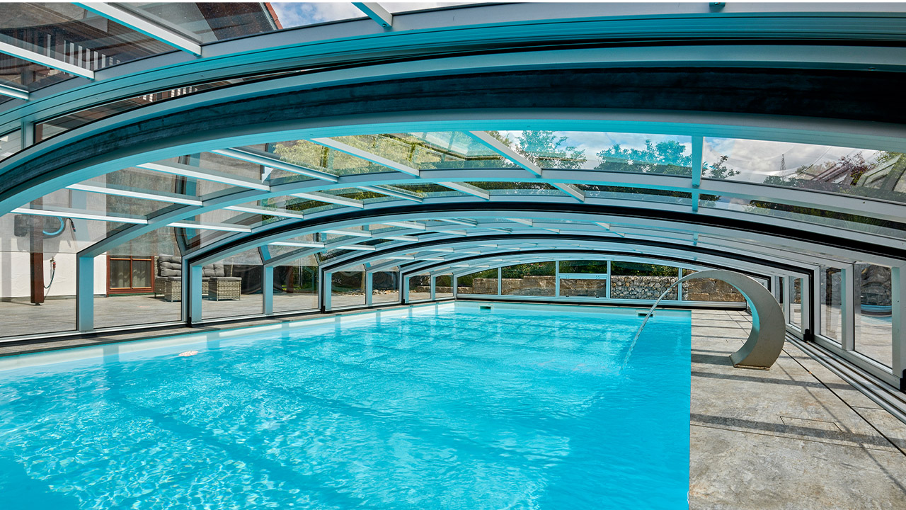 Ses parois latérales verticales confèrent au modèle CARAT un caractère distinctif et créent une sensation d’espace à l’intérieur de l’abri de piscine.