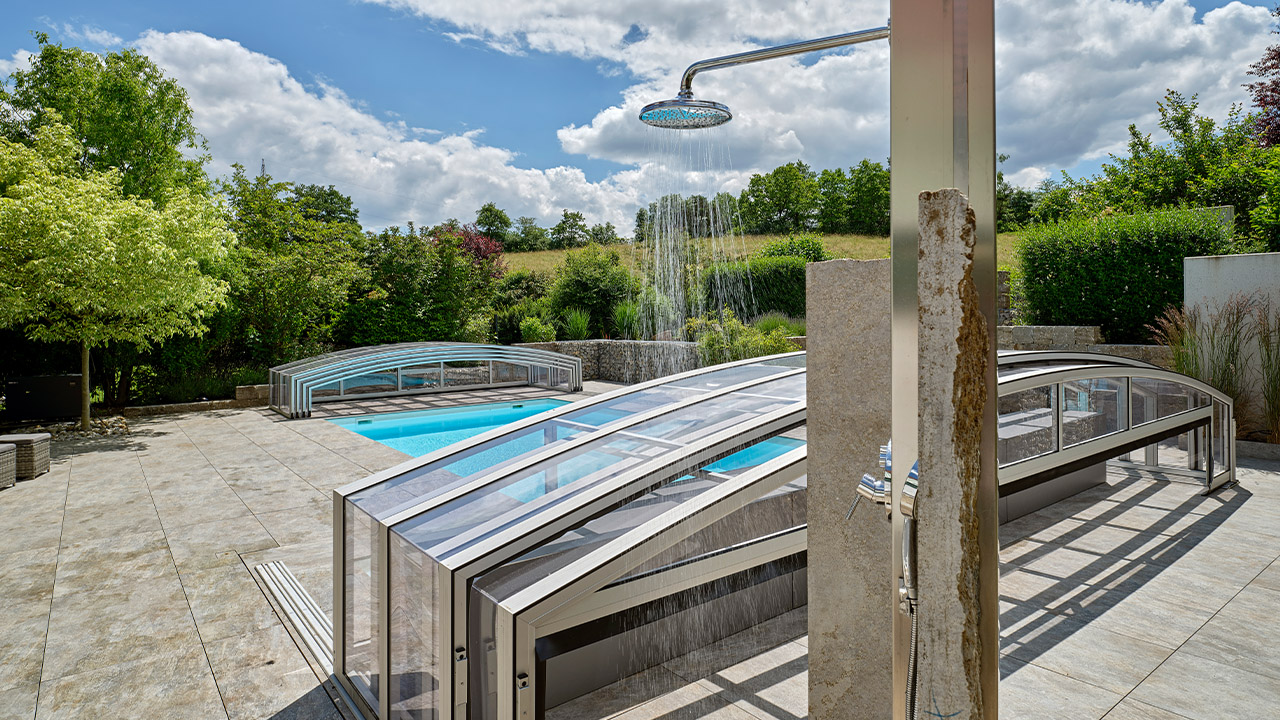En un coup d‘œil. Avantages de l’abri de piscine plat CARAT.