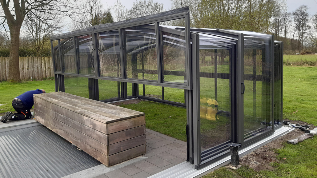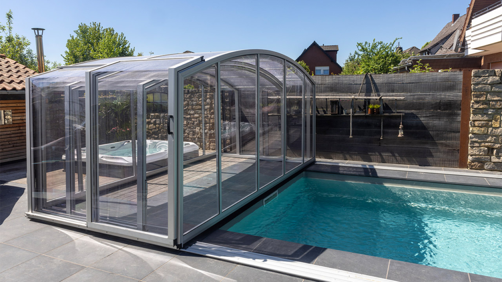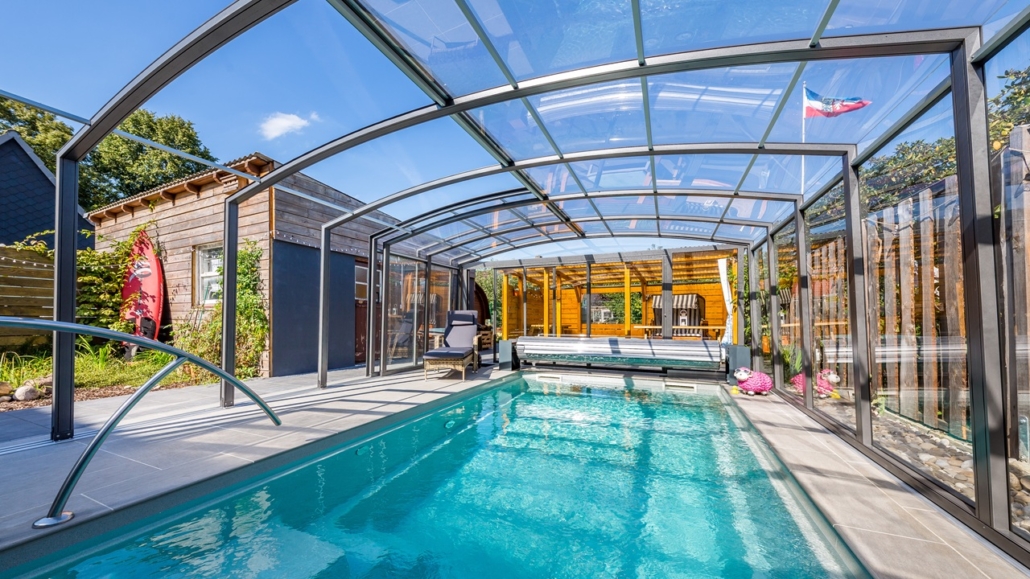 - Ouverture totale de la couverture et de l’espace piscine grâce à des modules indépendants