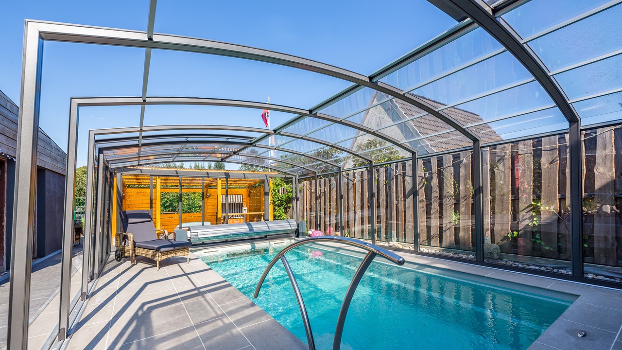 Avec l’abri de piscine CARAT haut, vous créez un nouvel espace de vie que vous pouvez aménager selon vos besoins et vos envies. Le principal avantage de cet abri est qu’il offre un lieu de détente, de bien-être et de loisirs. Grâce à sa construction haute avec des parois latérales verticales, il est possible de se tenir confortablement à l’intérieur de cet abri de piscine. En prolongeant considérablement la saison de baignade et en facilitant l’entretien de la piscine, tant en termes de confort que de sécurité, cet abri de piscine est idéal pour tous les membres de la famille.