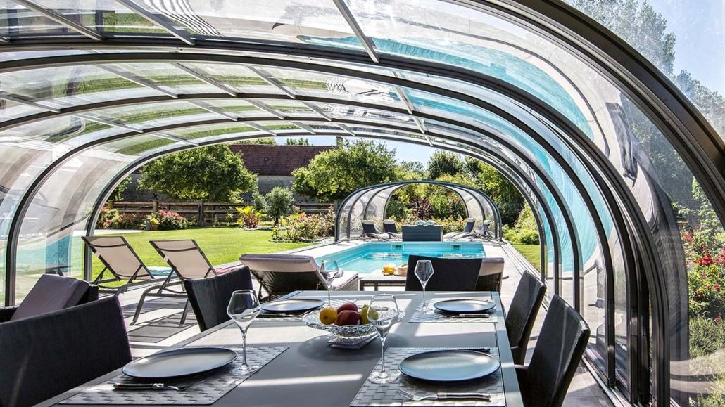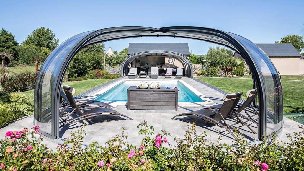 - Ouverture totale de la couverture et de l’espace piscine grâce à des modules indépendants
