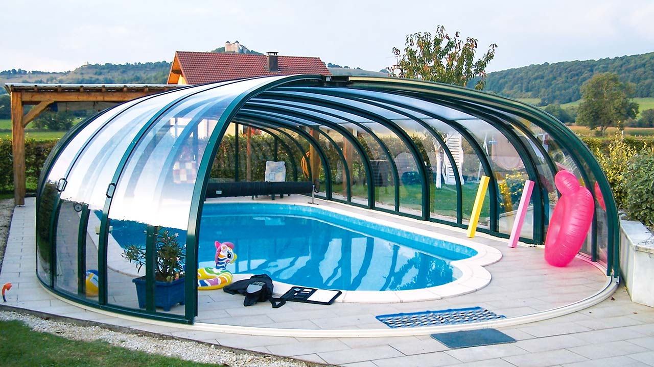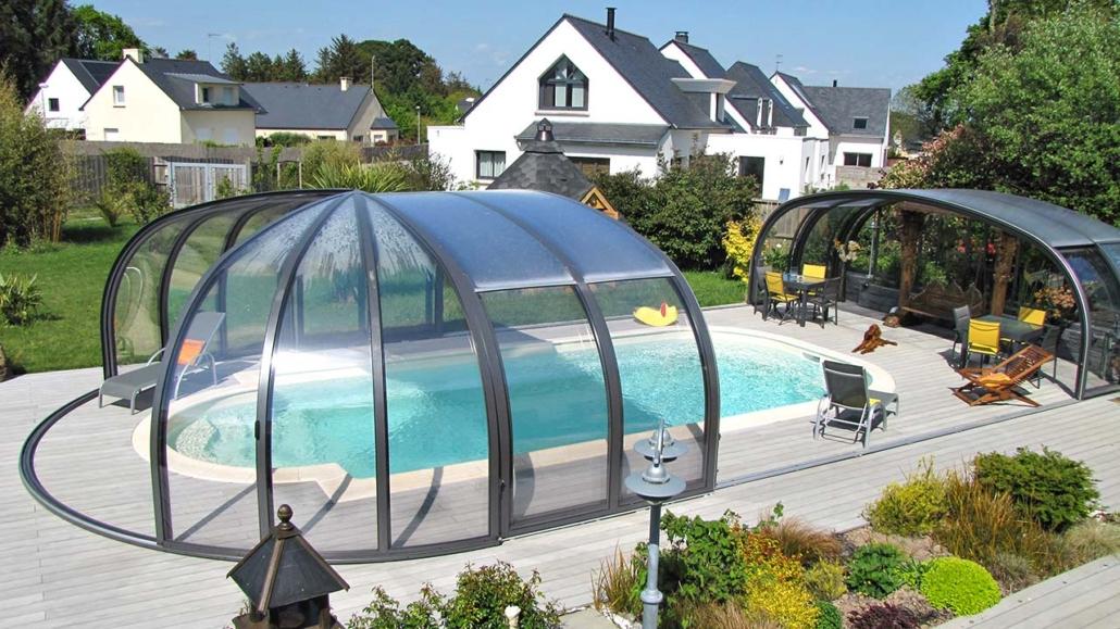 Aujourd’hui, cette couverture de piscine est très demandée lorsqu’il s’agit d’habiller avec élégance et raffinement des espaces piscine dotés d’une annexe ronde supplémentaire. La conception sophistiquée de cette couverture de piscine permet une adaptation individuelle à presque toutes les formes de piscine et crée un espace de détente supplémentaire. La partie arrondie de l’abri peut être ouverte de la même manière que les éléments du toit. La conception libre des zones d’accès permet de choisir de manière flexible des portes supplémentaires sur les côtés longs et sur la face avant. Nous nous ferons un plaisir de vous conseiller en détail sur ce modèle et d’autres modèles d’abris de piscine.