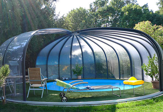 Poolüberdachung mit gebogener Dachfläche Modell Carat-sf