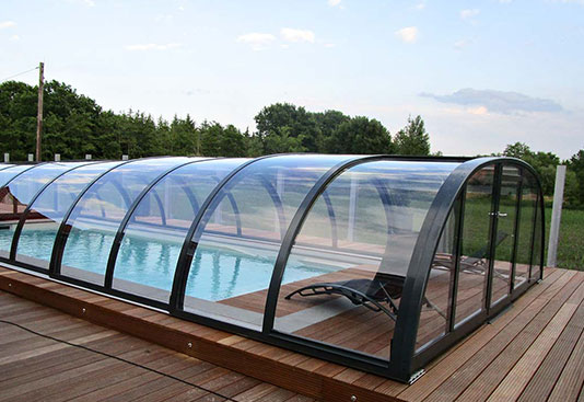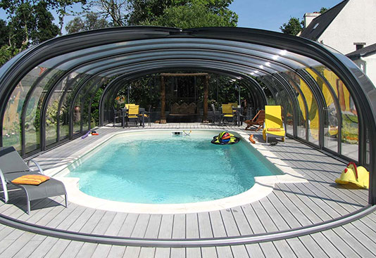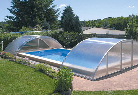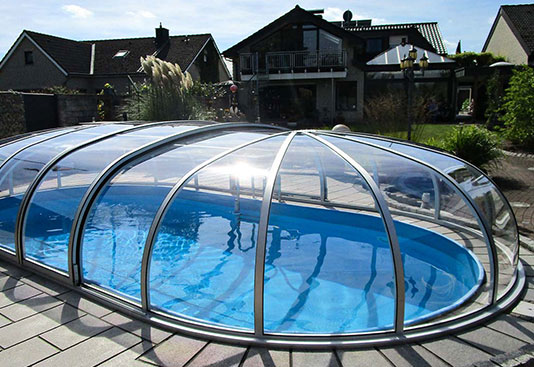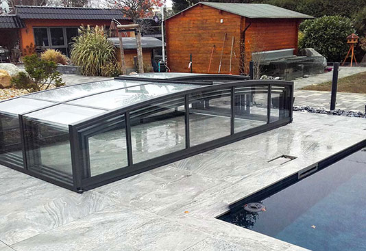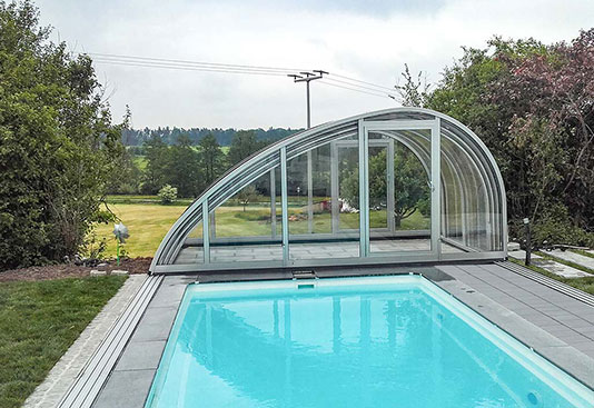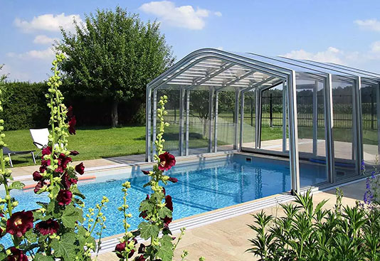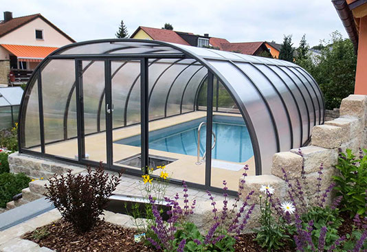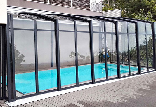 Hohe Poolüberdachung mit senkrechten Seitenwänden, Modell Carat hoch