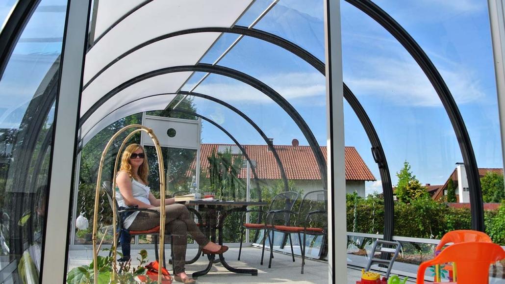 Avec un abri LUNA, vous êtes assis au milieu de votre potager, même lorsqu’il pleut, sans vous mouiller. L’abri de jardin s’ouvre en continu. Ainsi, vous pouvez également vous protéger du vent. Des éléments d’ombrage coulissants individuels vous protègent d’un rayonnement solaire trop fort. Avec un LUNA, les anniversaires d’enfants et autres fêtes de famille sont assurés d’avoir lieu en plein air, quel que soit le temps. Grâce à sa transparence, la LUNA est presque invisible de l’extérieur et à l’intérieur, vous vous sentez « dedans comme dehors ».